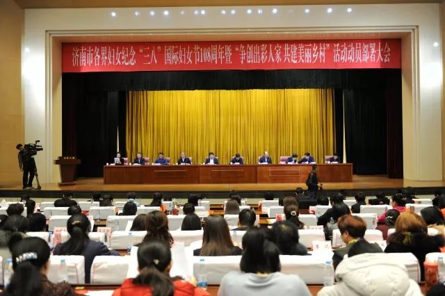 3月7日上午,济南市各界妇女纪念“三八”国际妇女节108周年暨“争创出彩人家 共建美丽乡村”活动动员部署大会在龙奥大厦召开。济南市委副书记苏树伟出席并讲话,市委常委雷天太,市人大常委会副主任许强,市政府副市长王京文,市政协副主席李好臣出席大会。