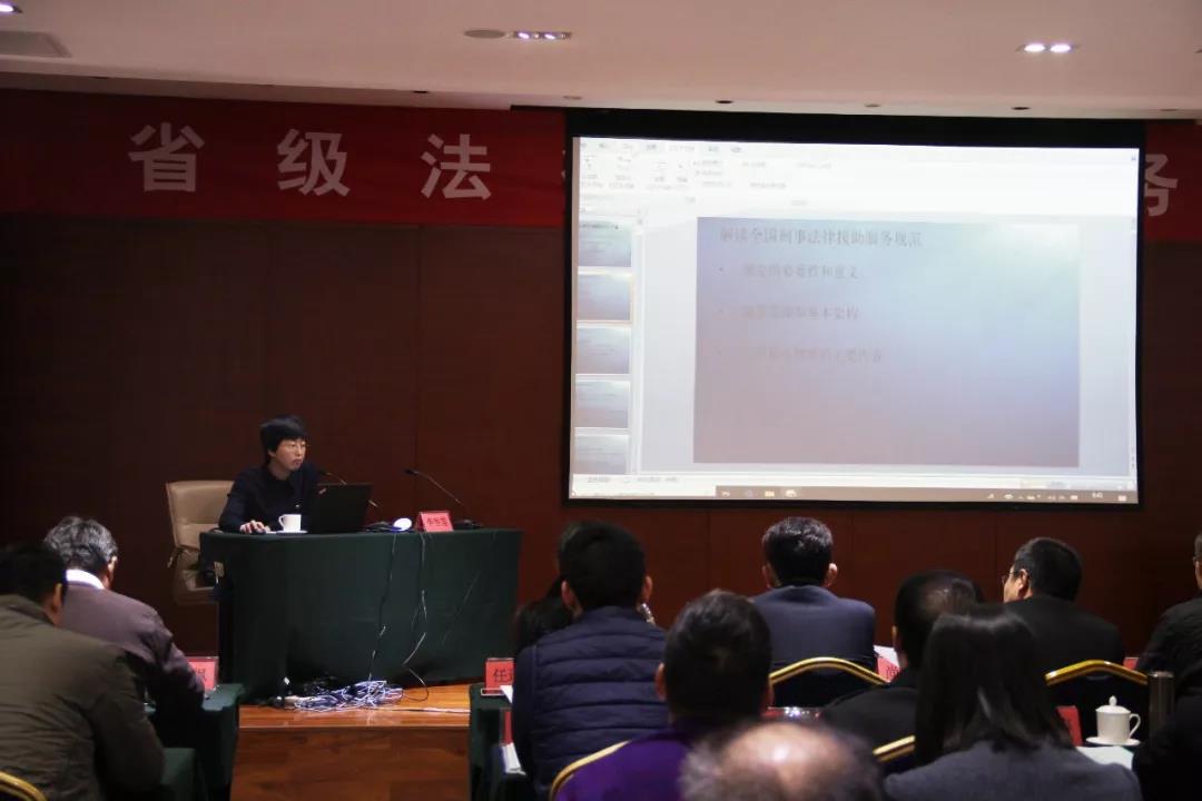 此次省级法律援助业务培训班由司法部李雪莲处长、中国政法大学吴宏耀教授及省委党校吕虹副教授带来精彩授课。在法律援助相关政策制度、刑事诉讼制度改革、习近平新时代中国特色社会主义思想等方面作出重要内容讲解。