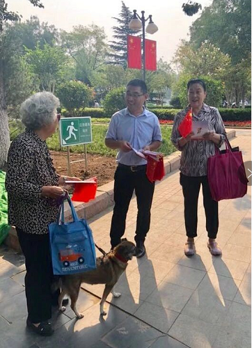 朱俊营律师在活动现场为广大市民发放普法手册,公益活动迅速把洪楼广场市民的爱国热情点燃,许多的老人、孩子、青年学生主动来领取国旗和普法手册,还有老年朋友主动加入到公益普法的队伍中来,帮助发放普法手册。市民们纷纷表达出了自己的爱国热情,同时也祝愿祖国繁荣昌盛!