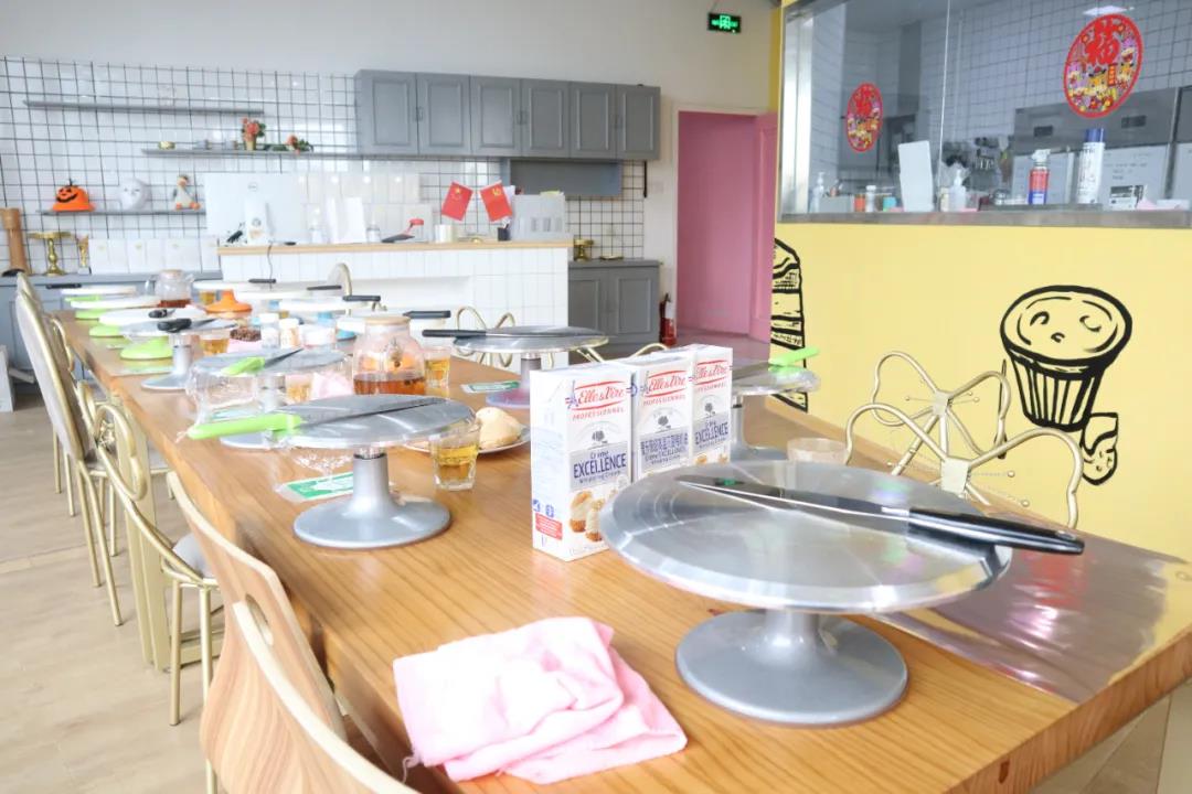 在专业烘焙老师的带领下,人人都专心、细心地学习和操作。从做蛋糕前的准备到蛋胚的摆放,奶油的涂抹,再到最后的造型装饰,大家现学现做,一双双灵巧的手制作出一个个独具匠心的蛋糕。
