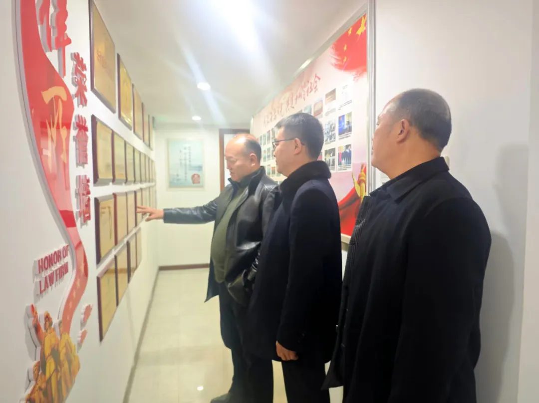联合会领导一行首先参观了律所党建活动室、荣誉文化墙、客户洽谈区等区域,并对盈德律所规范化的管理体系和富有特色的党建文化给予了高度评价。