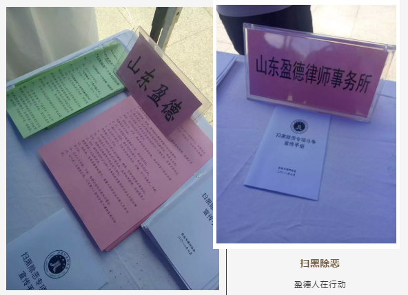 为深入贯彻落实党中央、国务院《关于开展扫黑除恶专项斗争的通知》要求,充分发挥律师在扫黑除恶专项斗争中的重要作用,进一步加大扫黑除恶普法宣传力度。2018年9月1日上午9时,济南市律师协会分别在槐荫区槐苑广场和历城区洪楼广场组织举办了扫黑除恶专项斗争法律宣传咨询活动,我所作为省优秀律师事务所、济南市先锋律师事务所,认真准备并积极参加了槐苑广场分场的宣传活动。