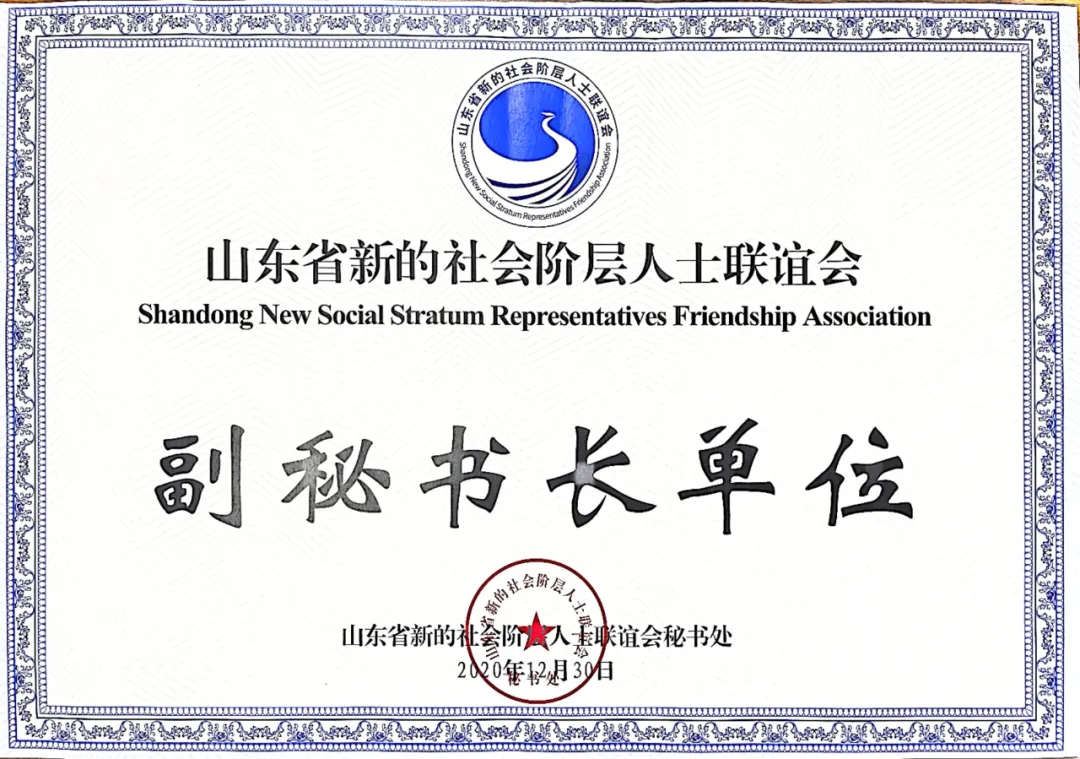 我所被授予“山东省新的社会阶层人士联谊会副秘书长单位”荣誉称号发布时间:2021-08-03 浏览: