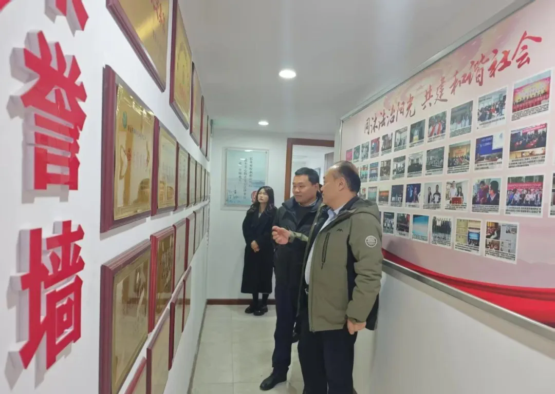 在李建新的带领下,君都所一行首先参观了我所党建活动室、律所荣誉墙、客户洽谈区等区域,对盈德所完善的办公设施、浓厚的文化氛围给予了高度评价。